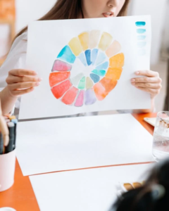 - Introducere în teoria culorilor: cercul cromatic, culori primare și secundare. Experimente cu acuarele.